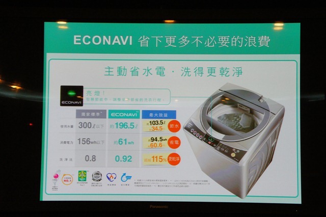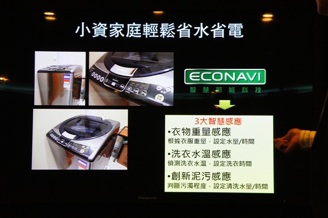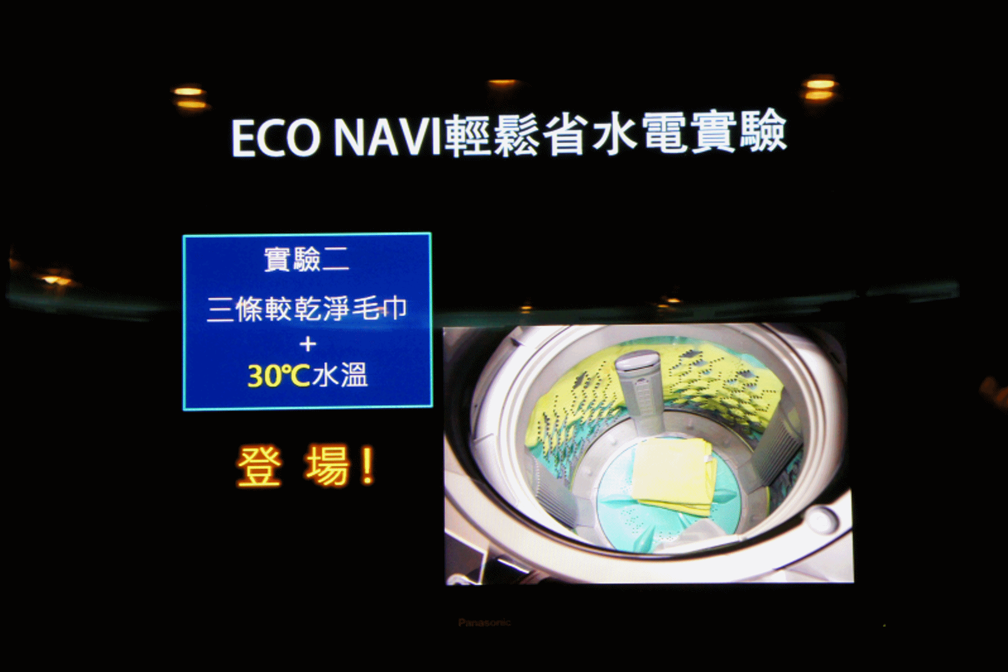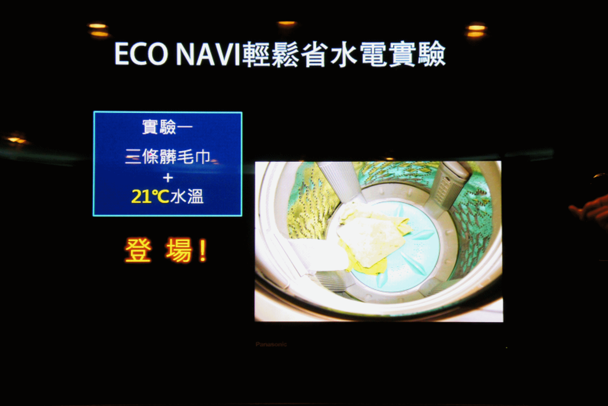 體驗會一開始,由上過購物台,配合購物台主持人賣自家產品的帥哥產品經理,介紹新款ECO NAVI直立變頻洗衣機。