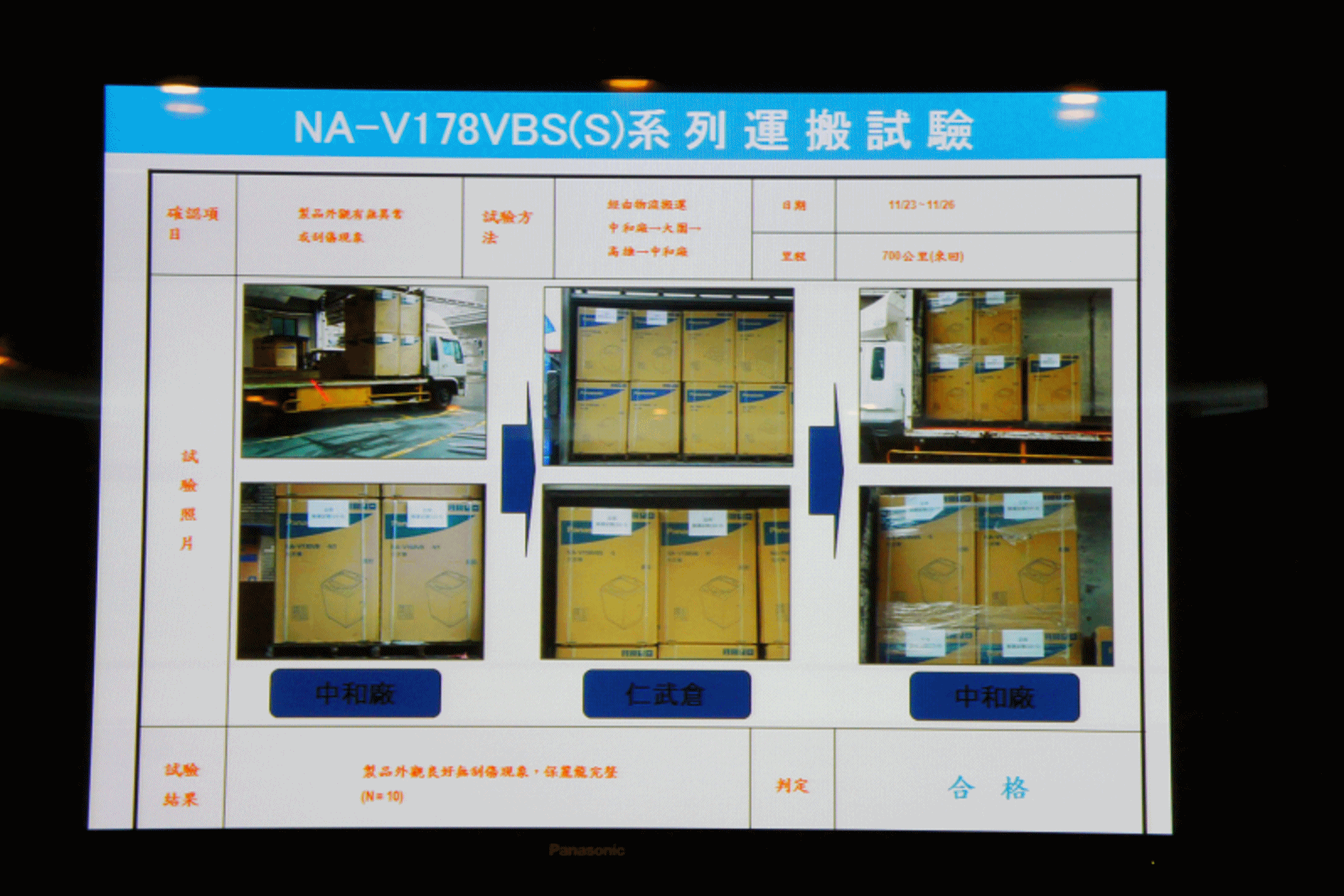 Panasonic對品質的要求,甚至連運搬過程也要做試驗,以找出可能刮傷洗衣機體,或對洗衣機體造成損害的可能點,以期降低、避免這樣強況的發生機率。