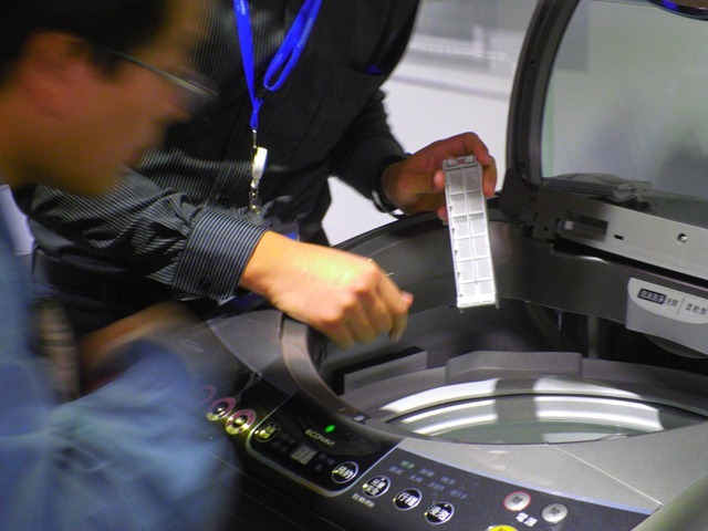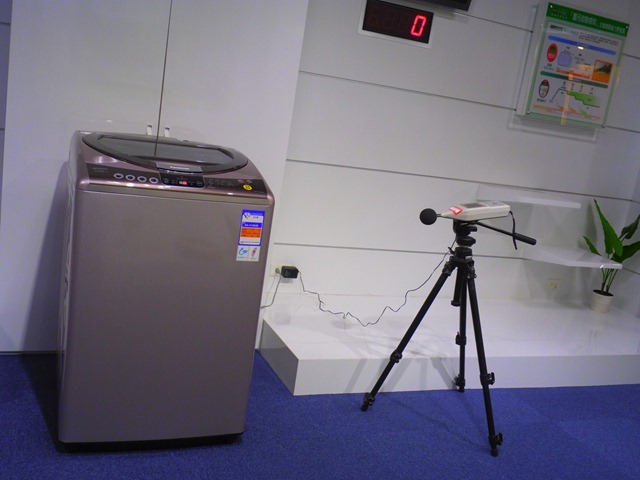 第二個,工作人員利用現場的測試儀器,讓大家了解前面簡報中,使用ECO NAVI智慧節能技術時,表中的衣物洗淨比是如何量測出來的?
