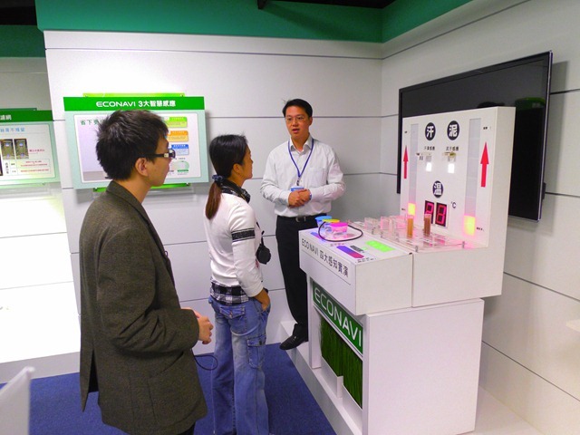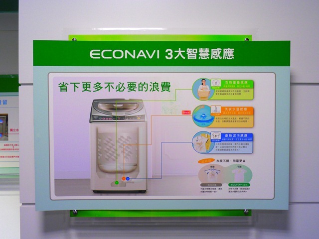 第三個,工作人員利用現場這台機器,說明洗衣機裡面,ECO NAVI使用的三個感應器是如何偵測的?並藉由這台機器上偵測結果,讓大家了解ECO NAVI啟動後,能比不啟動時的節能程度。