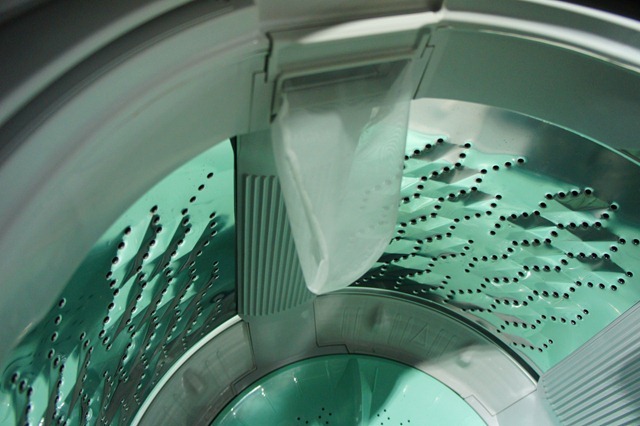 為了避免使用者擔心洗衣槽長黑黴的問題,新款ECO NAVI直立變頻洗衣機使用者,只要按下槽洗淨按鈕,再加入洗衣槽洗淨專用洗劑,最後蓋好上蓋,就會進入全自動槽洗淨行程。