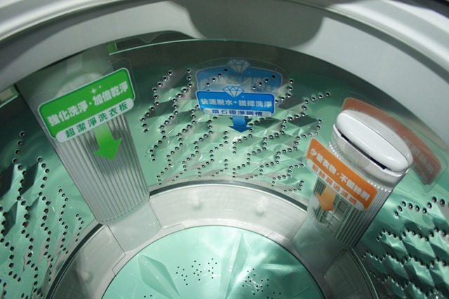 產品經理很誠實地對大家說明,在不同的洗衣狀況下,不一定能將衣服百分百都洗得乾淨。不過,新款ECO NAVI直立變頻洗衣機透過新舞動水流、極滲透立體水流、少量洗衣劑就能產生大量泡沫的軟方式,加上前面提過,排水孔增加2.3倍的鑽石極淨鋼槽,以及潔淨洗衣板和絲屑過濾網,讓洗淨能力再提升。