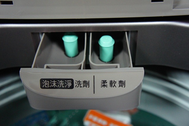 考量使用者倒洗衣劑的方便性,新款ECO NAVI直立變頻洗衣機將洗衣劑投入口拉高,讓使用者能很省力地倒入洗衣劑。