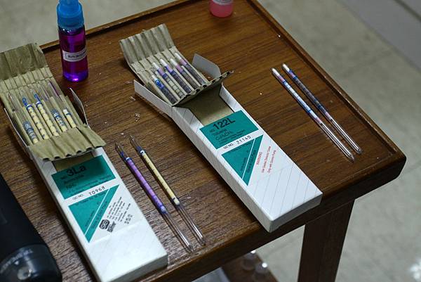 右邊的是甲醛的捕捉管左邊的則是氨氣的捕捉管,而看得出跟盒內未使用的顏色相同的就是經過nanoe 去除異味之後的採樣結果,幾乎是沒有了!!