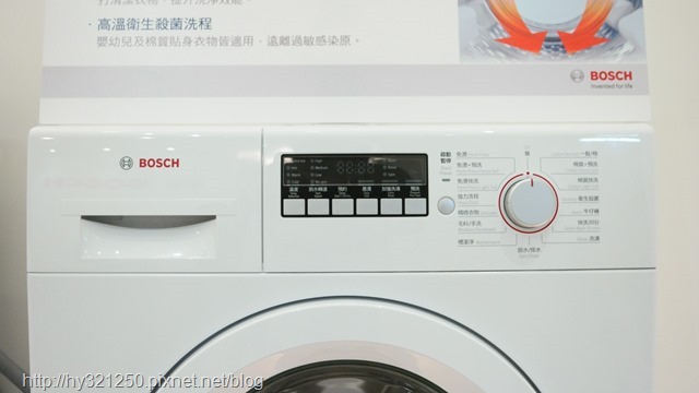 Bosch Serie 6水動能滾筒式洗衣機:提供15分鐘與30分鐘快洗,以及15種智慧洗程,現場看到實際運作時,發出的噪音與震動相對地低,同時用水量感覺也相對地少,是能兼顧清潔與用水用電量的機種。