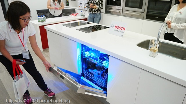 現場Bosch慢慢地打開蓋子,在蒸氣散發後,確認它真的是一台洗碗機。