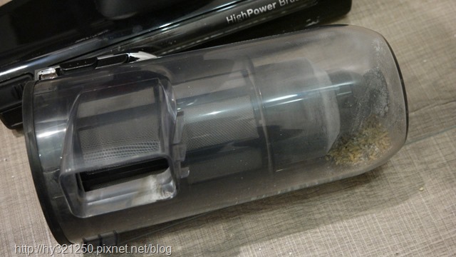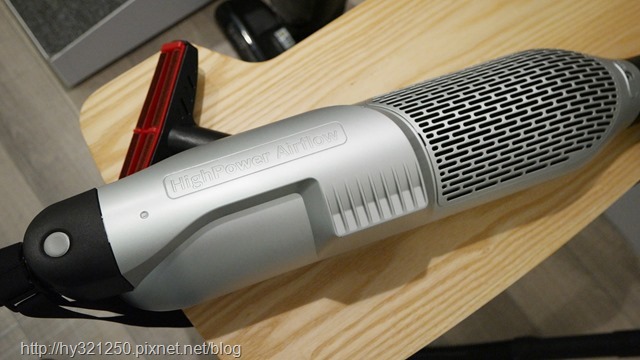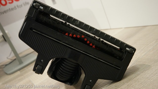 現場示範了這台無線直立式吸塵器搭配電動高效能刷頭,進行毛毯與地板的清潔。而實際看了之後,感覺清理很簡單、方便。