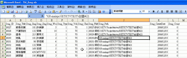 我的資料表裡的SONG_FILENAME分別是