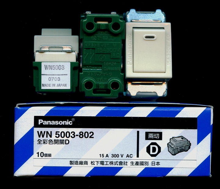 alan0803 wrote:您好,小弟目前也需要自行接一個開關,想請問「不過一般都是關閉黑色線」這句的意思是說照原PO的圖,中間要切斷的應該是黑色線,而不是白色線是嗎? 因為依據電工法規,白色線是代表中性線,在單相三線式110V中開關所控制的都是火線(紅色或黑色線)。======================================================================如果是單相三線式的220V,則使用兩切開關較安全。Panasonic WN5003-802 兩切開關