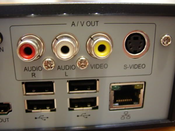 A/V OUT除了一般的AV端子外,還支援S端子輸出,下面還有網路孔以及四個USB 2.0擴充槽