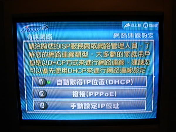如果你是DHCP的話,就請選擇第一個選項,它會自動去搜尋IP