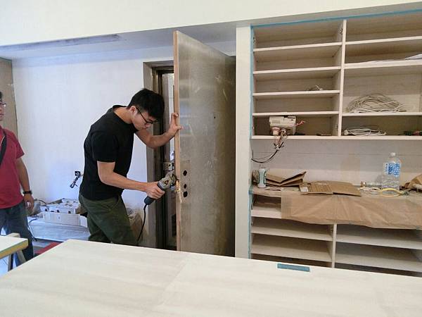 今天安裝的師傅很粗魯,感覺鐵門都要變型了,木作貼皮的部份都掀開來了,