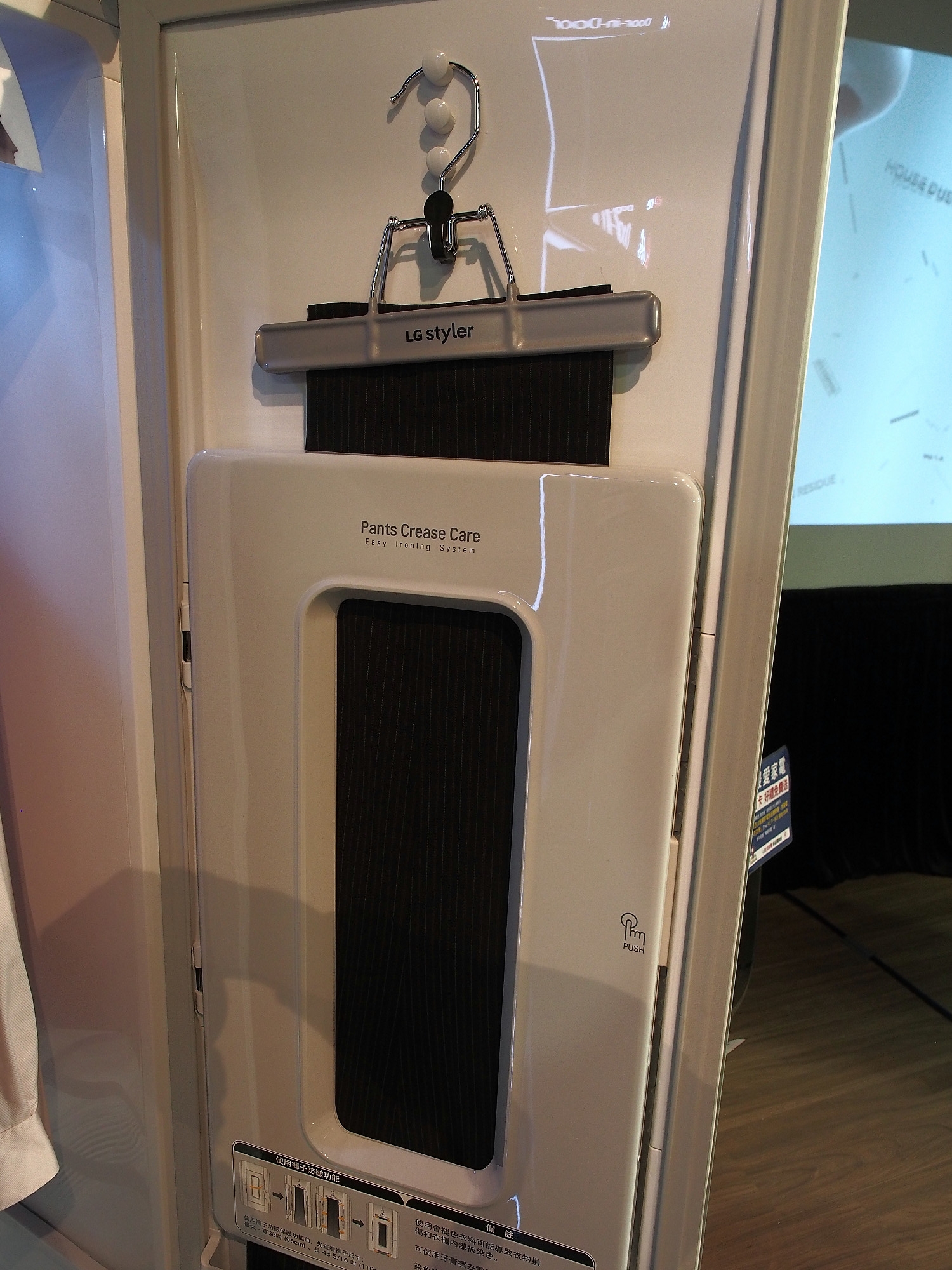 ▼布幕右邊這三位:門中門冰箱,新面孔;Styler 智慧電子衣櫥和TWINWash雙能洗洗衣機,這就老面孔了,上回在癮咖啡的體驗會就見過它們。