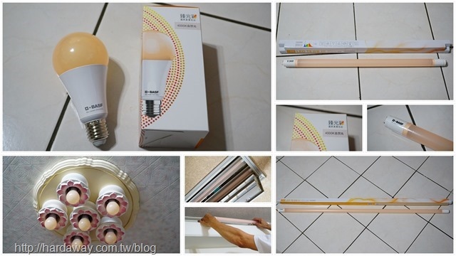 這次要更換的有燈泡與燈管,所以我們拿到巴斯夫臻光彩LED燈泡,還有兩尺與四尺的巴斯夫臻光彩LED燈管。