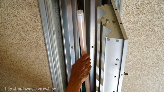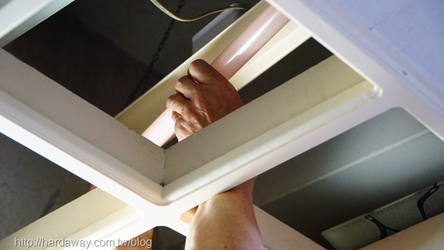 實際更換巴斯夫臻光彩LED燈泡與燈管這天,先從四尺長燈具裡的舊日光燈館開始換起。