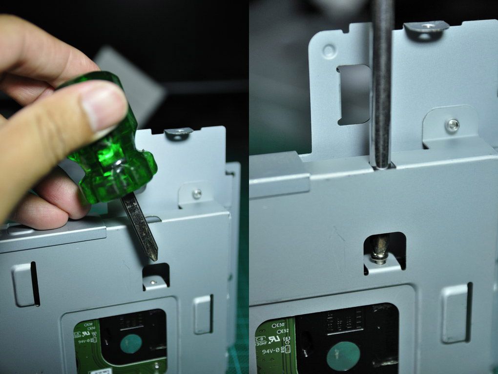 這個固定螺絲鎖孔,用這種短又粗的螺絲起子是鎖不到的,非得用細長的起子~失敗的設計。