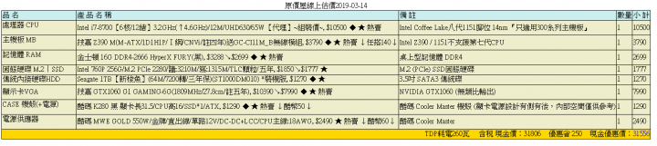https://www.sinya.com.tw/diy/export_diy/?id=1552546043如果說以差不多的規格可以用組合價去搭配會比較便宜一點POWER基本上是算搭比較高瓦數一點,可是價錢沒差很多可以直接拿650硬碟通常比較多人買美光MX500顯卡這價位我覺得可以多加一點上1660TI效能比較高這樣差不多31K多