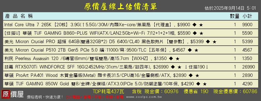 - 3 大組裝電腦店家的網路商城比較後,只有 TSUKUNO 有賣 265K + 5070Ti 套裝機