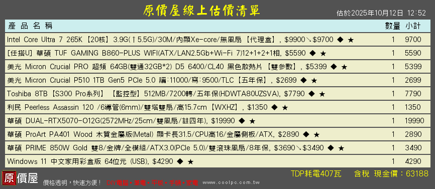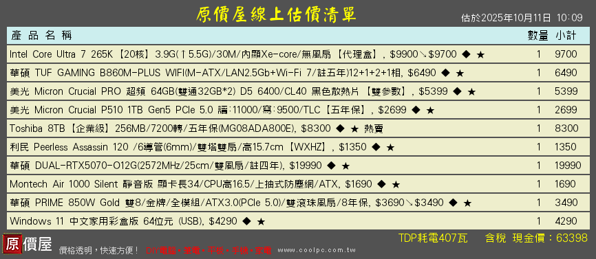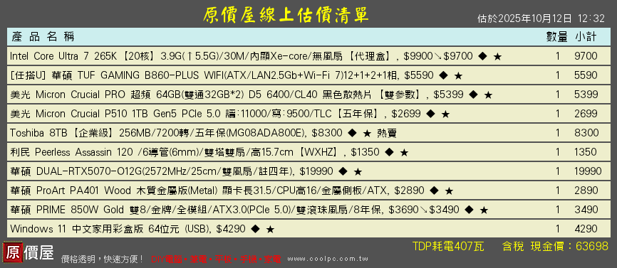 hana77 wrote:這樣配置合適嗎?預算到頂了無法在高如果能再提高CP值更完美 265K +9070 +CL32低延遲64G+用料更好Z890八層板20相80A供電溫度上又會來的更低那嘶狼PRO-8T與KC3000-2T+靜音機殼有TYPE-C,送金士頓32G的D5可賣掉完勝原單組合!