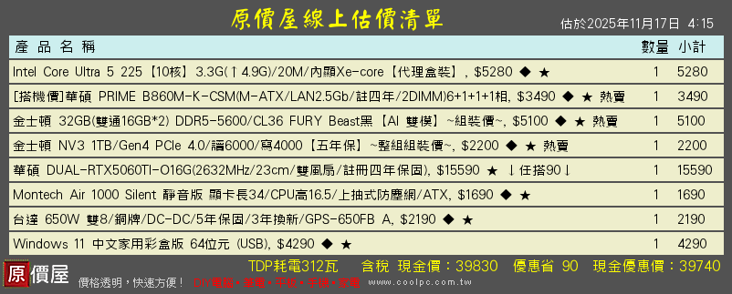 睿睿rayyy wrote:請問這樣的配置可以嗎,店員幫忙配的 7500F +9060XT-16G與5060ti-16G(五年保非人損180天換新)+C930CL30低延遲 +B650 +DS900保銳650W送ETS-T41含OS彩盒版組合菜單!