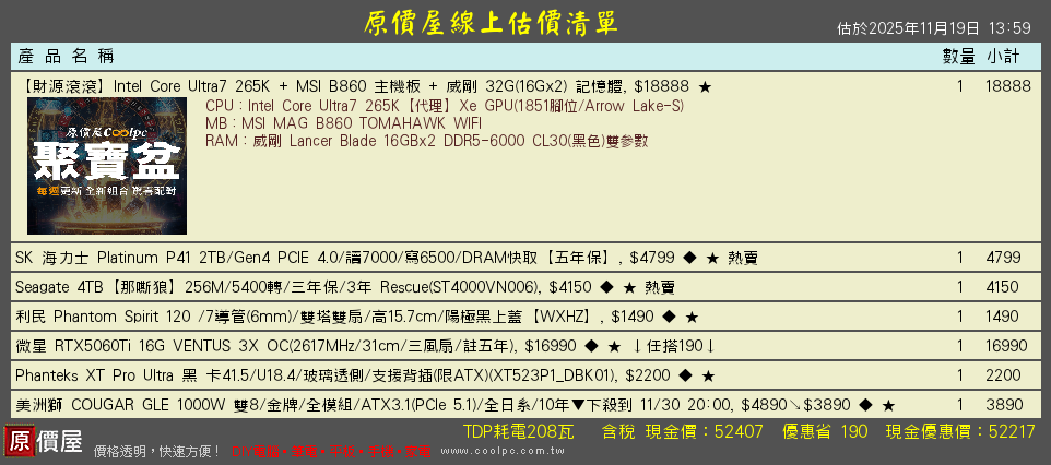 因為未來可能會有遊戲需求,顯卡的部分我會希望能滿足我現在的辦公需求即可,其他部分我會希望預留未來升級5080/5090的空間,同時盡可能讓性能最極致