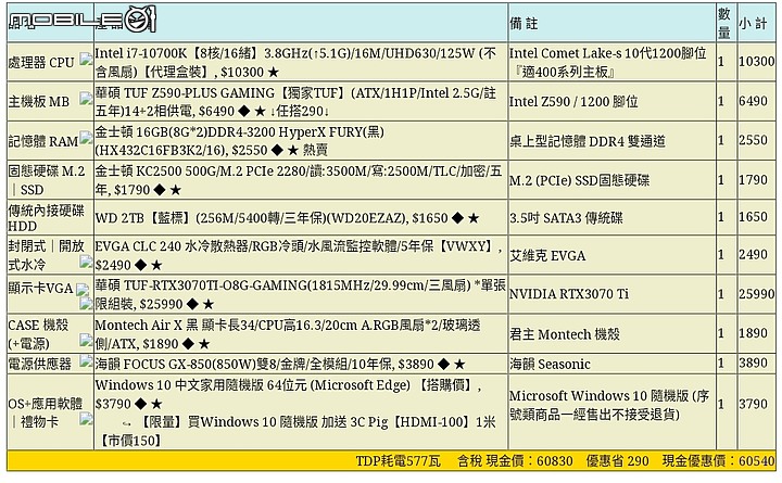 Alexanderhsu79 wrote:感謝各位前輩建議。已(恕刪) 已經訂好了嗎....我的建議是顯卡可以等看看不然EVGA 3080性價超高,3070Ti整體來說還無法完全超勝2080Ti顯卡配這麼好,不超頻太可惜了主機板用好一點,穩定度絕對有感電源供應選850W,可以一直沿用10內保固螢幕看自己喜歡挑選吧,玩遊戲選VA的比較好,看影片繪圖選IPS比較好另外還有HDR(最好選到1000)和 支援FreeSync(Nvidia顯卡) 轉接頭也要看一下