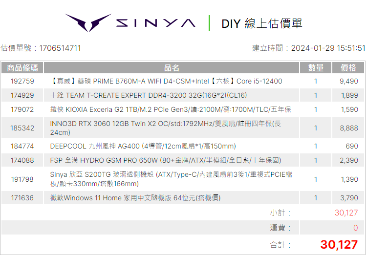 30k的話顯卡你可以上到3060的等級,以遊戲上的表現來說會比3050再多2x的偵數