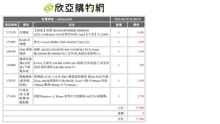 自己不愛水玲瓏 但他的價位很可以如果找別的機殼擴充性更好 但價格也會高一些"機殼大小有限制,高度需小於35公分,長度需小於45公分,會安裝win 11,硬碟500G以內就好,上述需求,還請各位大大幫忙組一下電腦,18000元含os,"這單應該有符合全部需求外加wifi主板使用彈性更高5600G應該也是這價位能買到內顯最好的cpu了想玩點小遊戲不用加買顯卡