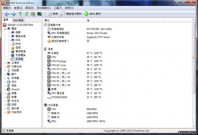 待機溫度 不知為何後風扇原廠預設1500轉 在BIOS和AIDA64看都1600轉(室溫約28~30度無空調)