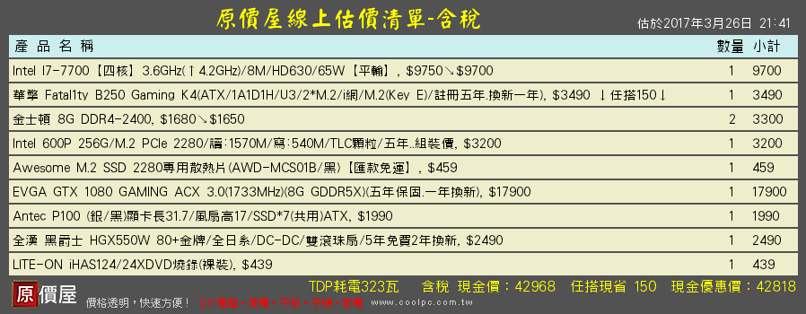 這是原價屋看過小弟的單所做的修改