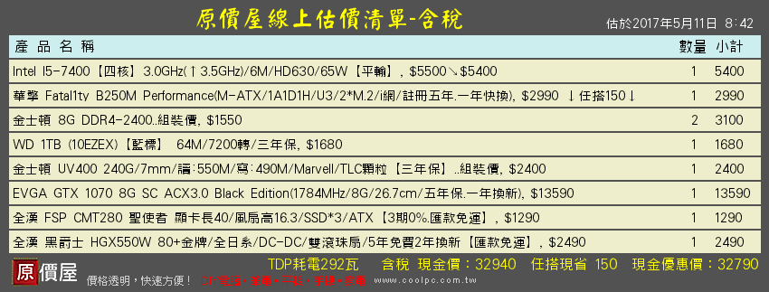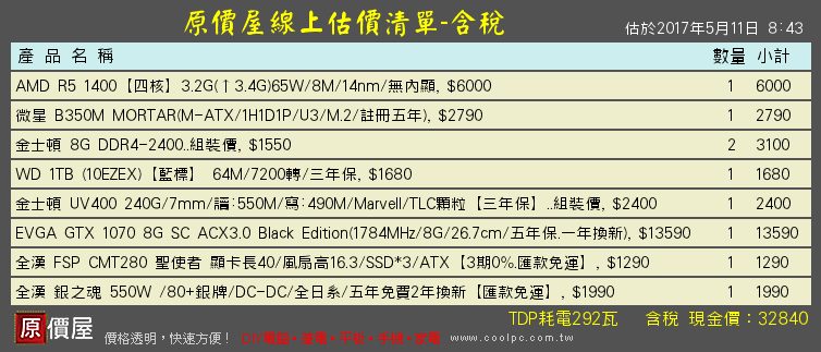 小弟最近想組電腦玩Ghost Recon跟最近一些大作,效能部分希望能開到中以上經過爬文後小弟我試著組了一台,希望各位大大能幫小弟看一下估價單,看看哪裡需要修正更換的部分這是小弟試組的估價單:麻煩各位大大了,謝謝~~~