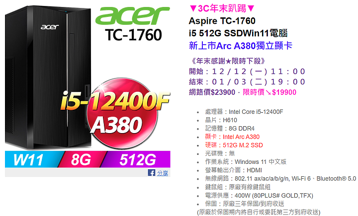 之前原價屋有塊技嘉的6650XT只賣7390比微星的6600賣6990僅多了400元,才是性價比較好選擇,可惜你來晚了,賣光光了現在原價屋把對標3060及6600XT的A750原價9690降了2700元賣6990..還送個大禮包遊戲大作:* 決勝時刻:現代戰爭II 2022 價值$2219創作者軟體(五選三):* PowerDirector 365™ (威力導演365 影像剪輯一年訂閱) 價值$1980* D5 Render™ (專業渲染 3個月訂閱 ) 價值$3490* MAGIX Video Pro X14 (影片剪輯 6個月訂閱) 價值$1845* Topaz Gigapixel AI (AI無損優化照片解析度 完整下載) 價值$3075* XSplit Premium Suite (實況直播 3個月訂閱) 價值$1845原價屋Intel A750跳水大拍賣