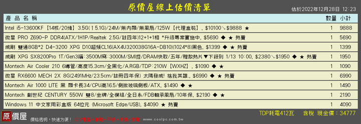 請益專家們我的預算是30000~35000,可以適當提高,想購買文書機(偶爾會使用影片剪輯軟體),下圖是之前詢問到的報價,被評論說偏貴:請問這樣的預算內,想要4T硬碟+500GB SSD+好的主機板+Win 11+到府安裝,有推薦的組裝菜單嗎?謝謝ps 我上一塊主機板是用AMD不知道哪塊,5年就壞了- -