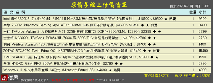 板子選五年保的, cpu 上 13500, 先拿 gen4 1t, 卡拿 3060ti