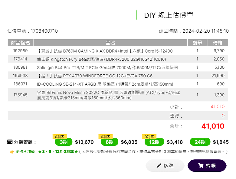 主機板建議不要太低階的版本主板+顯卡 都搭技嘉 穩定 效能優主板+cpu優惠組合技嘉 B760M GAMING X AX DDR4+Intel【六核】Core i5-12400顯卡+電供優惠族組合技嘉 RTX 4070 WINDFORCE OC 12G+EVGA 750 G6主板有wifi+藍芽以下參考