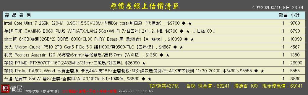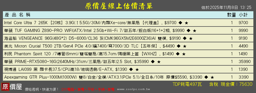 thebluewings wrote:主要用途:遊戲(目前只有Minecraft)、模擬器、VM、Coding使用習慣上有可能會開著遊戲做其他事,基本上不太關機Coding部分,由於工作關係會有AI開發需求(研究性質),最好能跑本地模型 同樣售價的B850主機板可拿用料更好的八層板,整體溫度比原單六層板還更低265K+5080+96G記憶體+Z890八層板20相供電+T500-2T組合菜單給你參考!