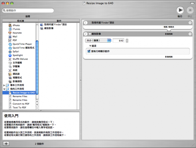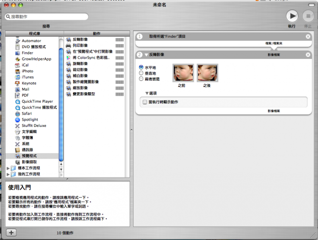 johnsonyu wrote:但是我想請教大家的是不知道大家有沒有用過 ACD See 6.0 以後的版本在做管理預覽圖片都相當好用,而且可以"一次大量"的修改圖片大小 或是 翻轉圖片 例如180度 上下對轉或是左右對轉或是90度 轉 所以說 若能一開始就問清楚 就能節省多次發回文浪費的時間除了免費的Automator有個有名共享軟體GraphicConverter應該可以達成您的要求【抱歉 沒用過ACDSee6 不太清楚】