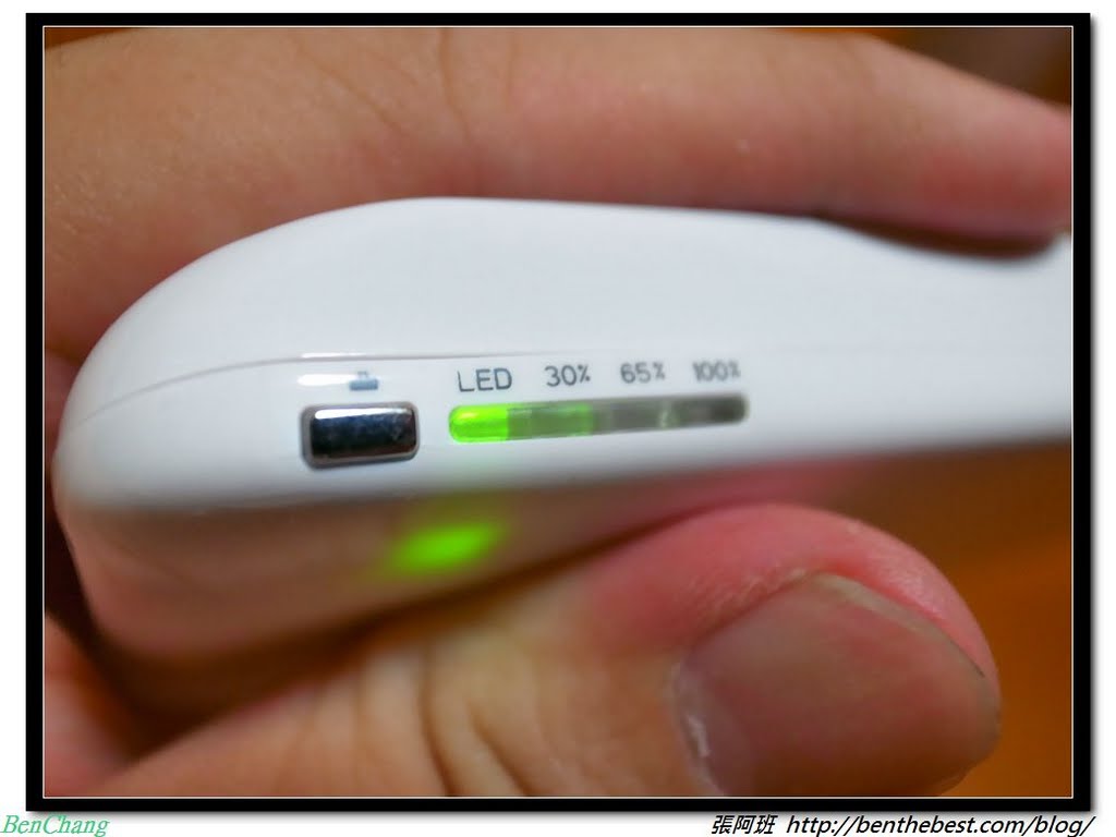 插上電源後面的小燈就會亮,表示在充電狀態,四個燈都亮起來就滿分了