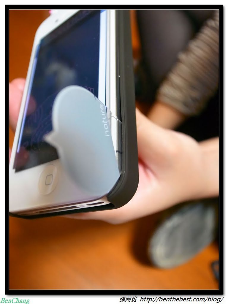 它會把背蓋撐開一些些,然後沿著邊邊刷上去,有點像鞋拔的功用,一來避免傷到機身,二來也可以有更好的密合度