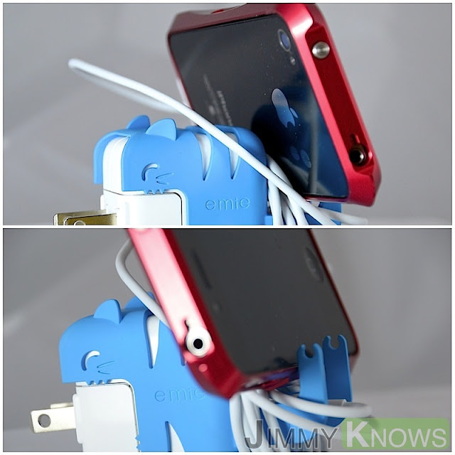 | 後面的尾巴的功電可不只有繞線而已唷!在幫裝置充電的時候,也可以直接將iPhone放在上面,不用擔心沒地方放啦~ |