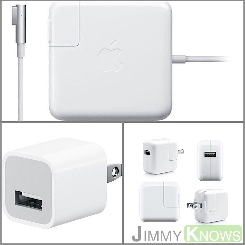 | 最上方是一般mbp在用的Adapter,左下角的Adapter輸出電力為1A,右下角的則為2.1A,在充電的速度上差異可是很大的唷^^ |