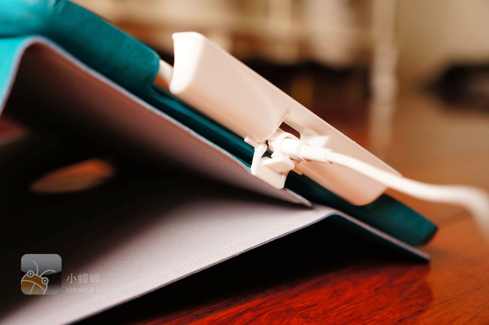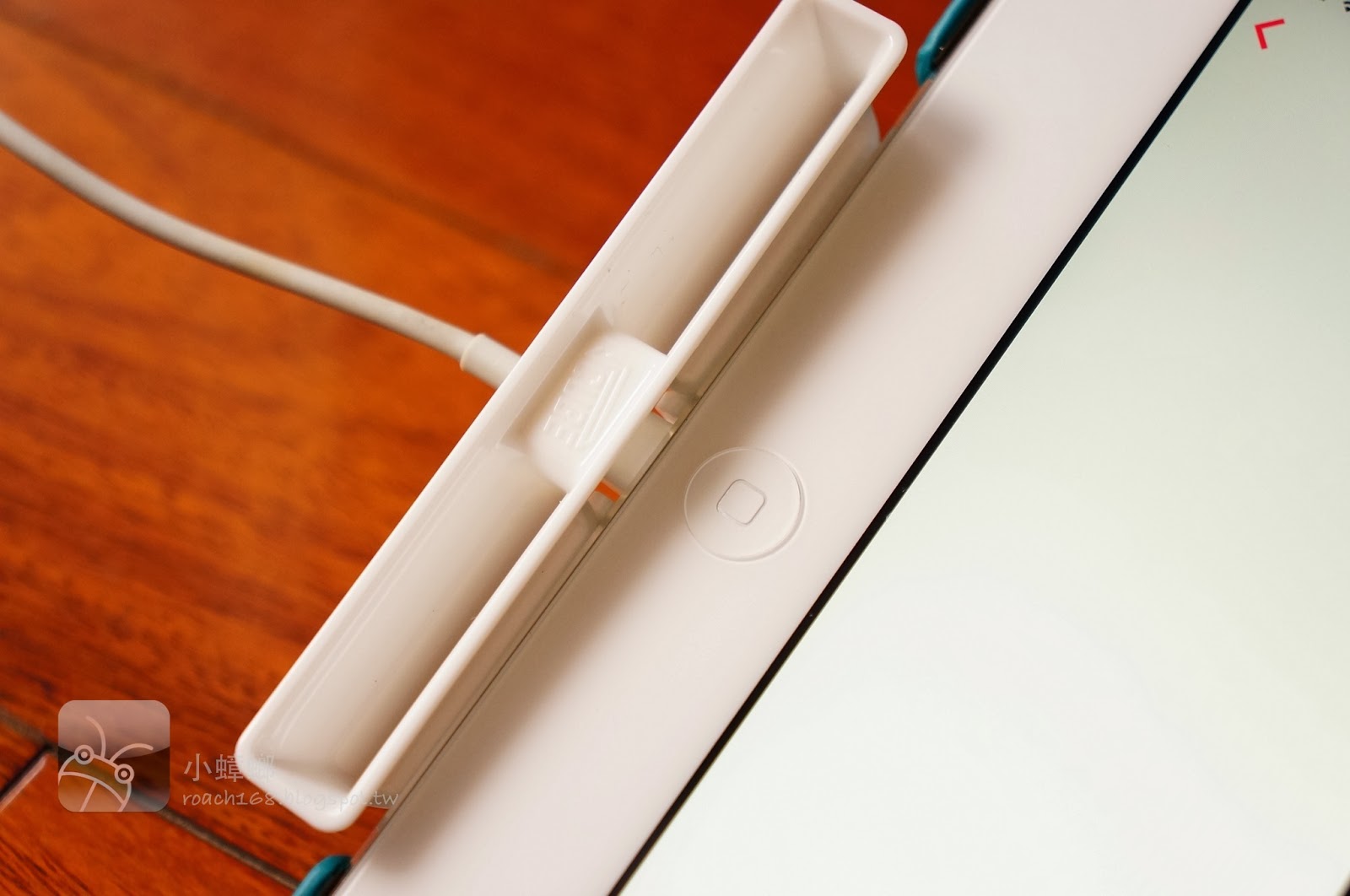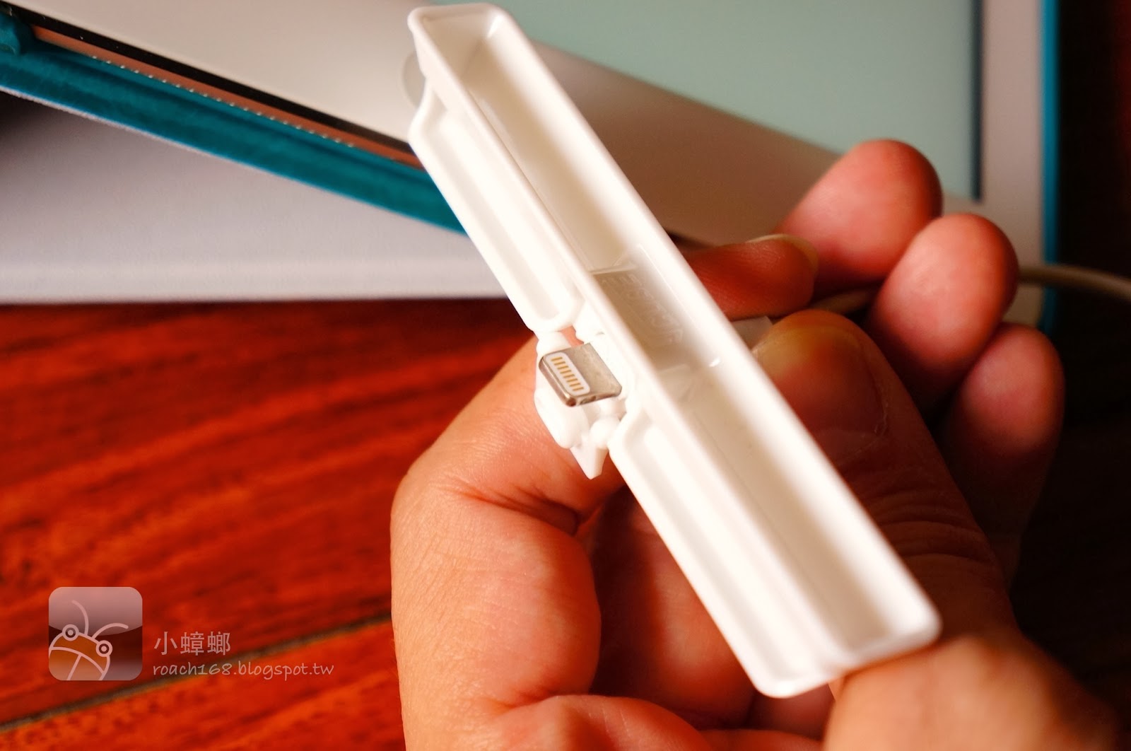 如果我想要充電的時候怎麼辦咧?這點Cube也幫你想好了,只要照著上面的圖,把上面的一個小開關扳一下,就可以讓Lightning Cable穿過去囉(這裡我才懂上面那個圖的意思)