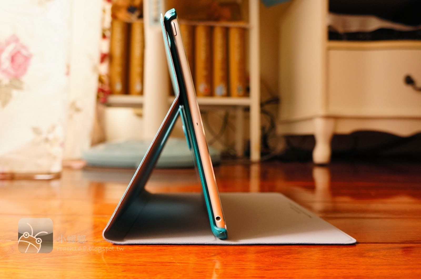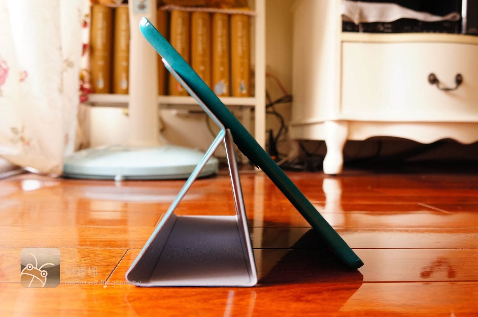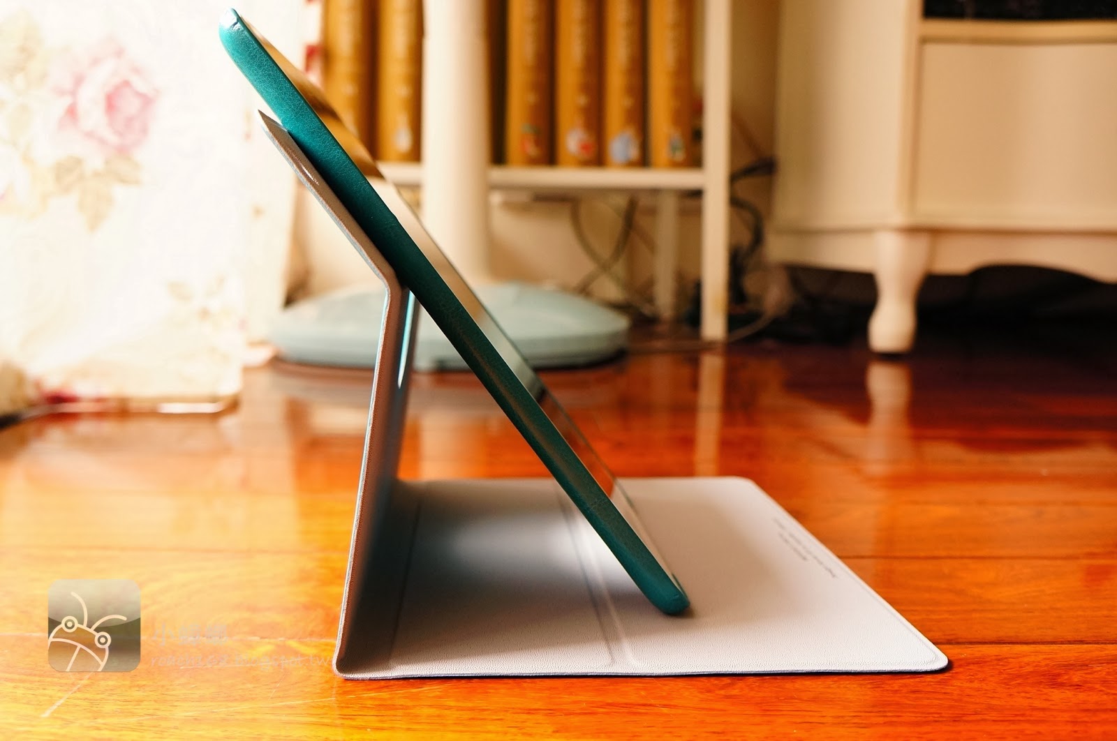用這種書本式的皮套,最重要的功能當然就是可以讓它立起來,方便看影片和打字,或者和家人FaceTime囉