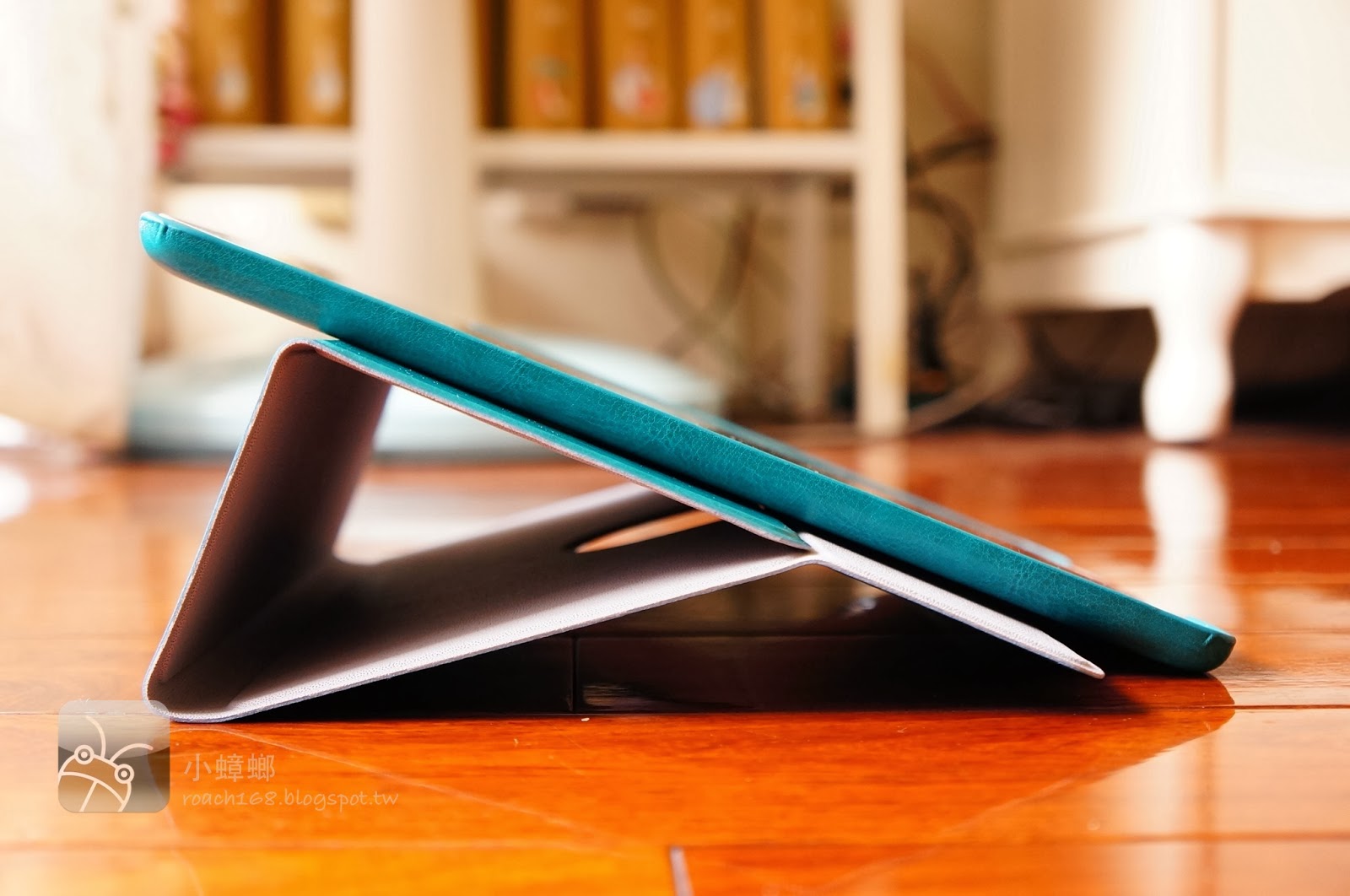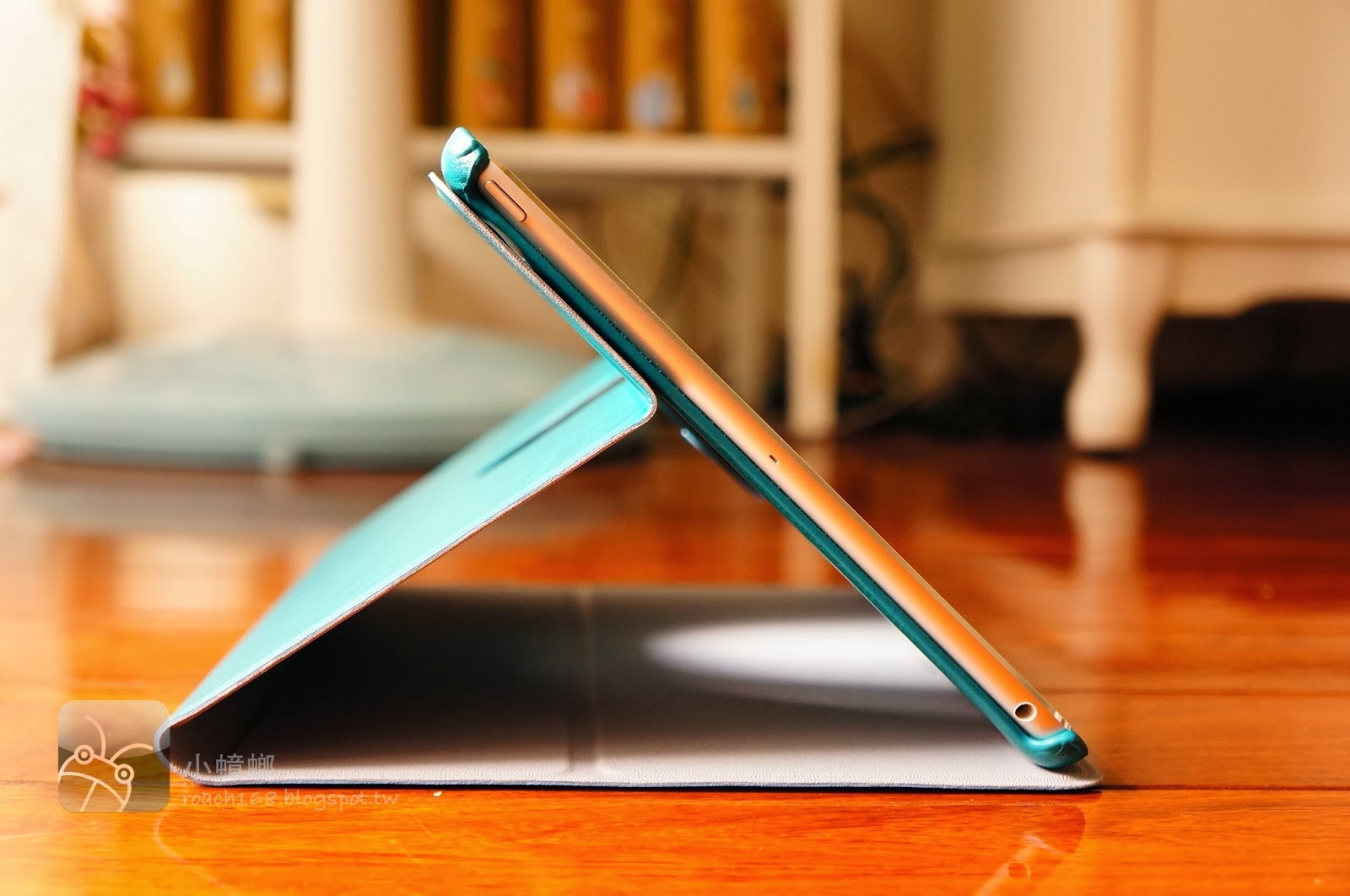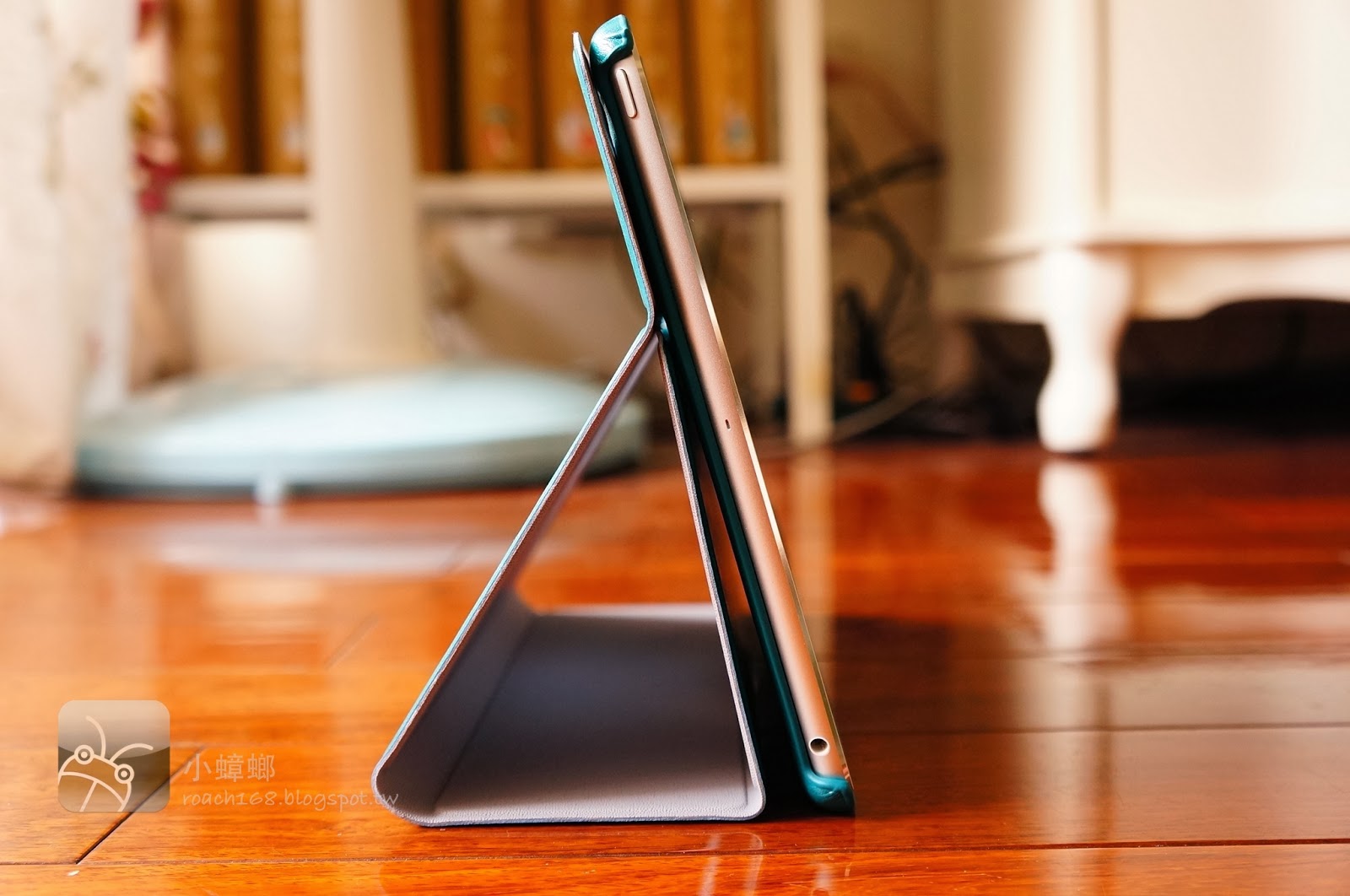 用這種書本式的皮套,最重要的功能當然就是可以讓它立起來,方便看影片和打字,或者和家人FaceTime囉