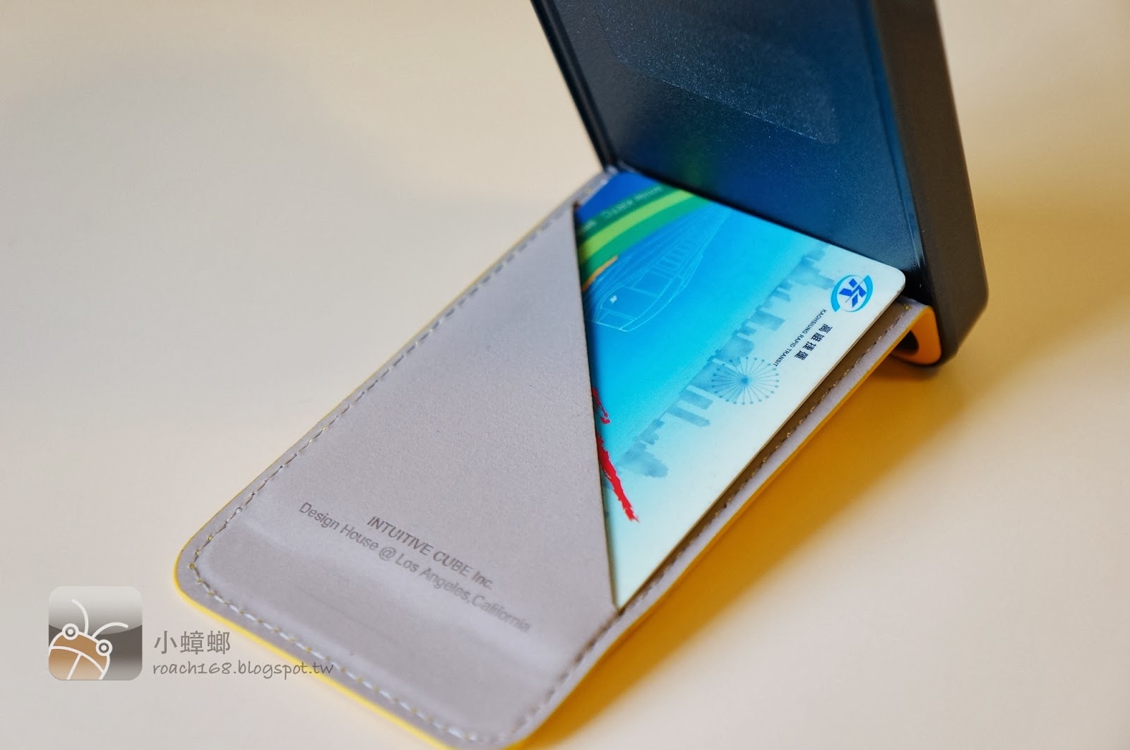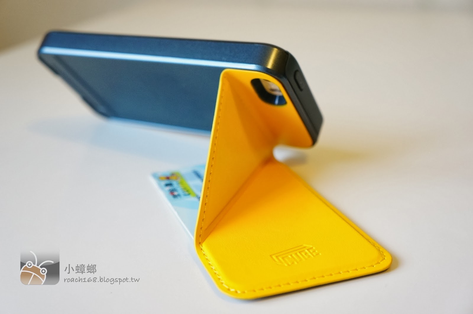 背面的卡片收納設計,可以讓你的iPhone直立站起來,拿來用FaceTime,超方便啦!平常後面那個皮革沒用的時候,會有磁鐵吸附在背面,不會讓它在那邊晃來晃去的