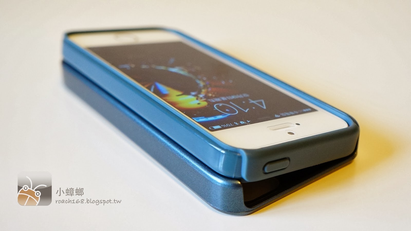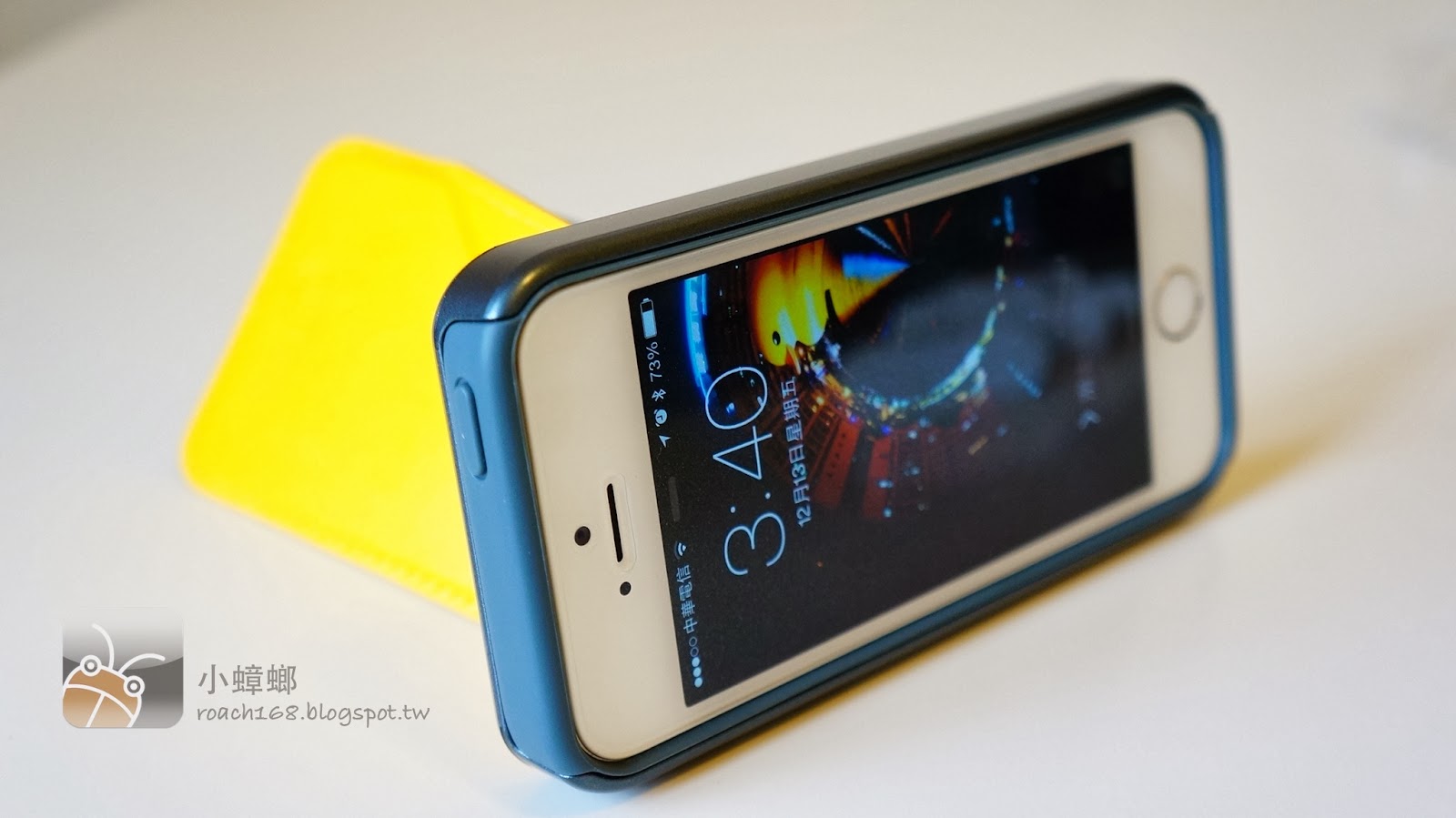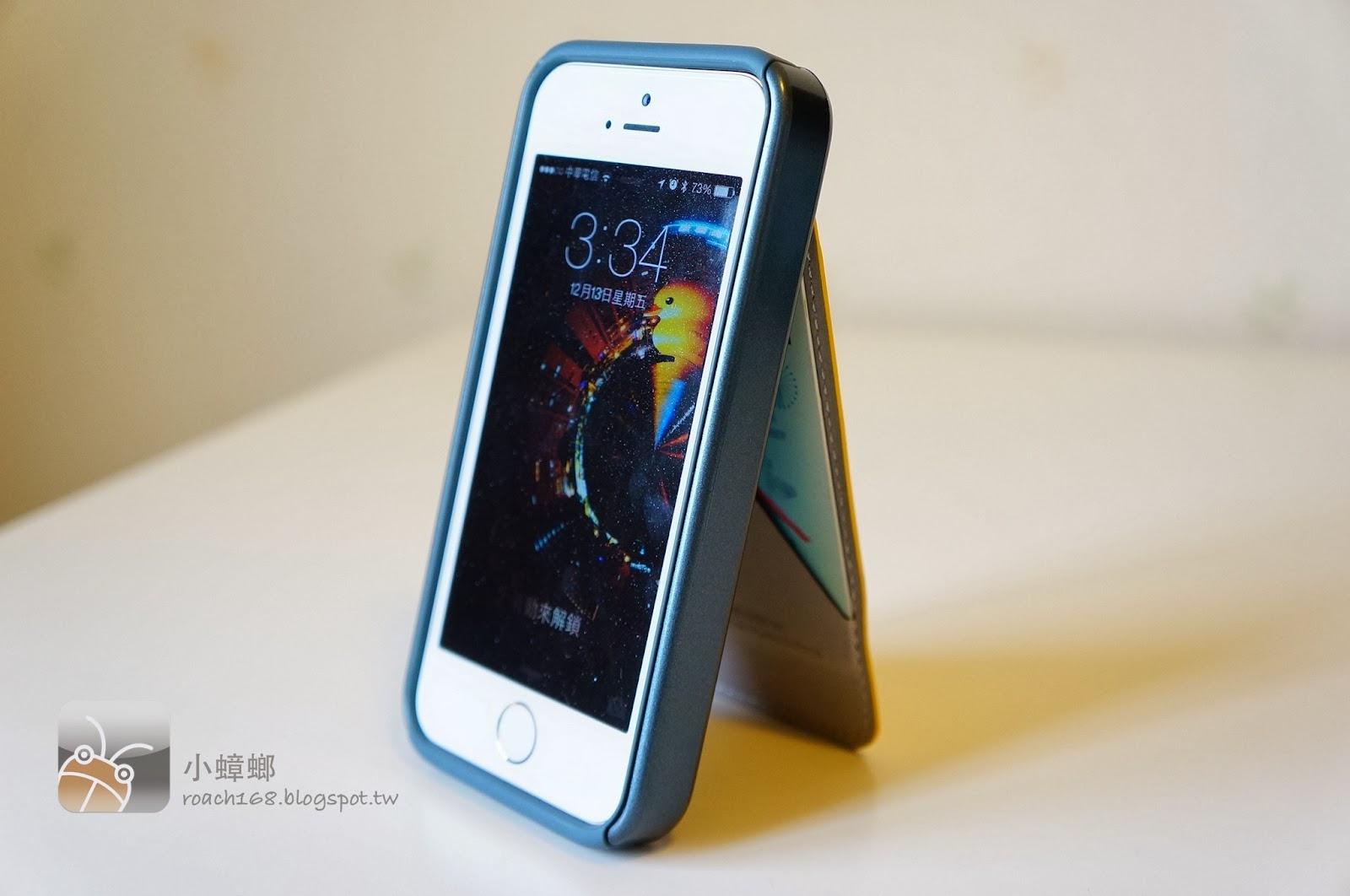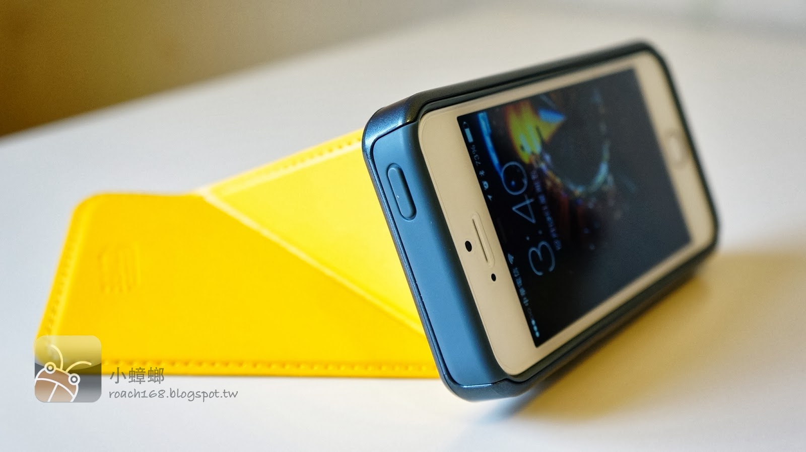 但如果要像官網的示意圖那樣放,就會稍微把iPhone給翹起一個角度來,應該是皮革的部分還沒那麼軟所造成的,用久了就會較好折了吧