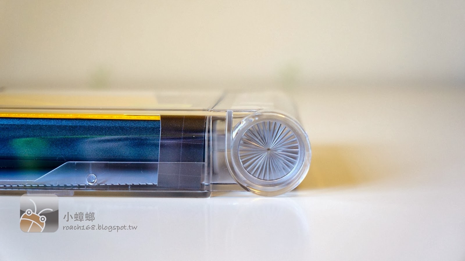 這次的邊框顏色與上次黑色不同,來得比較有質感,好像是深灰色?還是灰藍色?傻傻分不清楚,繼續來看一下整個四周包覆性如何吧