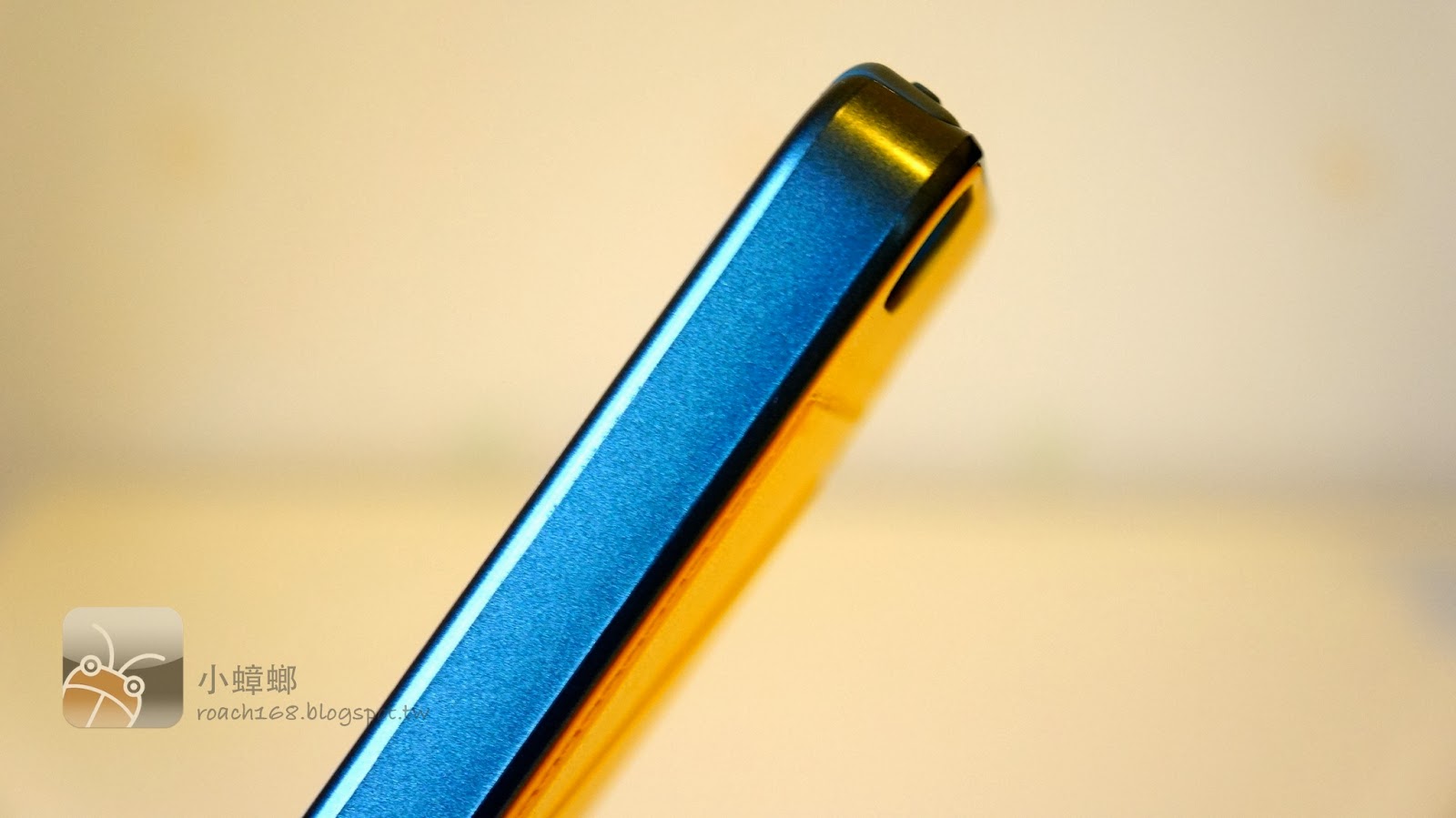 剛剛有講到邊框的質感,比上次那個粗粗的來得好看不少,而且好像有那種金屬噴刷的質感,照光看起來是還不錯喔,握起來的感覺也不差