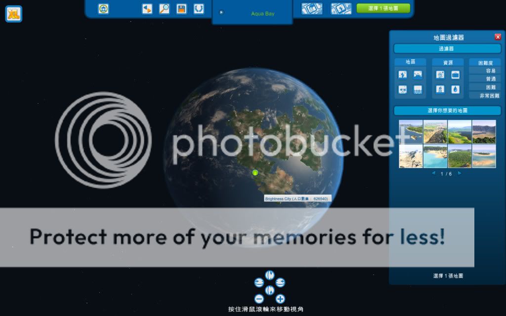 這是遊戲一開始的星球畫面,但是所有陸地都是固定的,無法在遊戲中編輯。