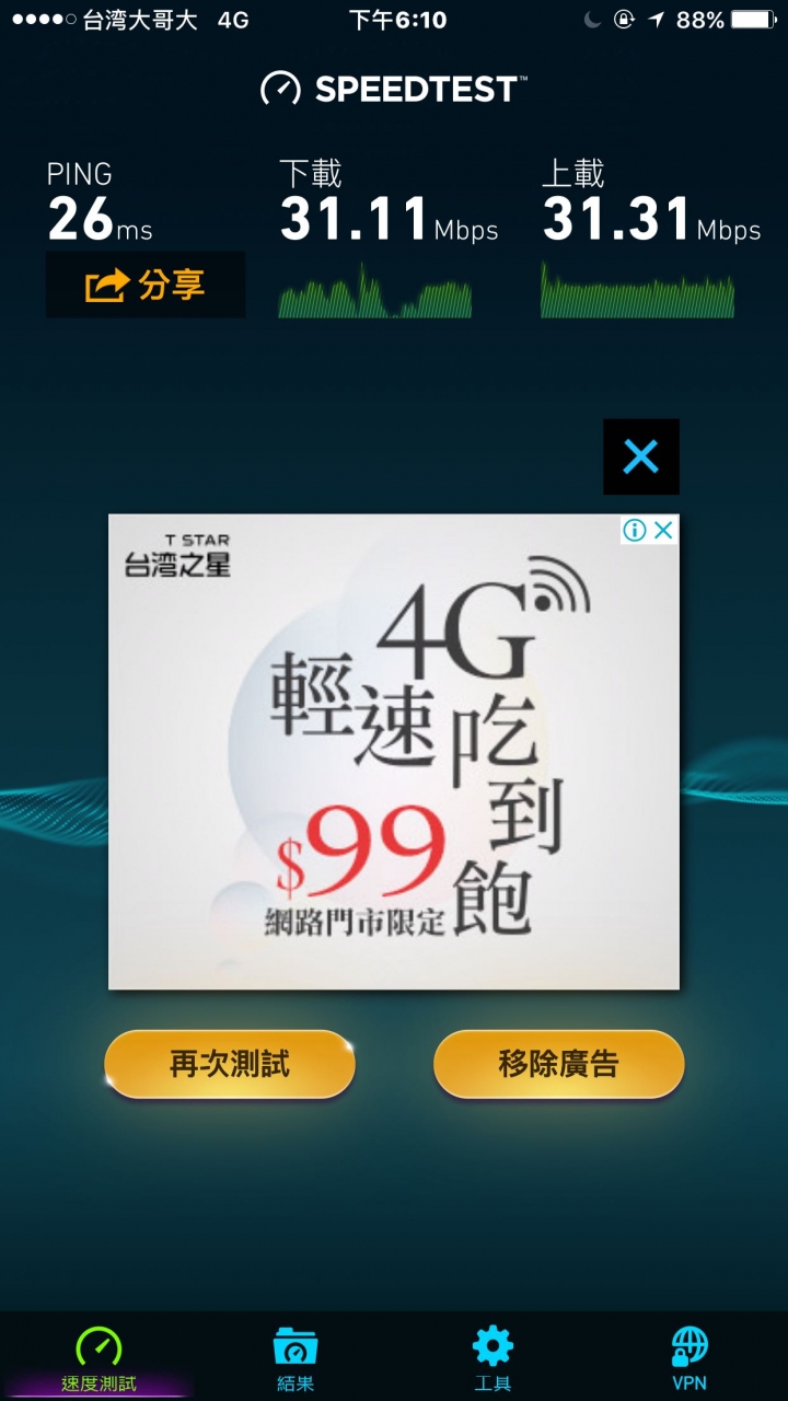 各位大大好,今天中午網路就超級無敵慢,儘管手機上(iphone 6)顯示的是4G,訊號強度3格但開個IG就會出現「無法更新動態」的字樣,甚至連LINE都看不到圖片了…玩個皇室戰爭都卡在尋找隊友的畫面…手機重開過,也將網路重置過了,問題還是一樣存在不知道住中部(彰化地區)的朋友們,有沒有這個問題?